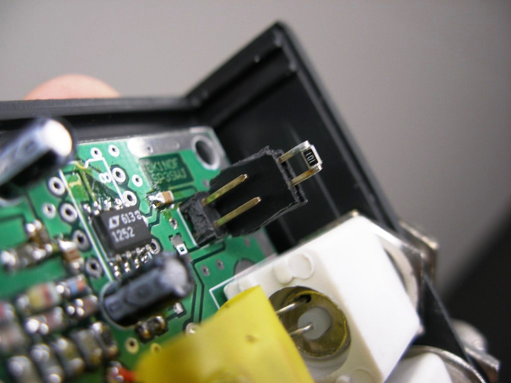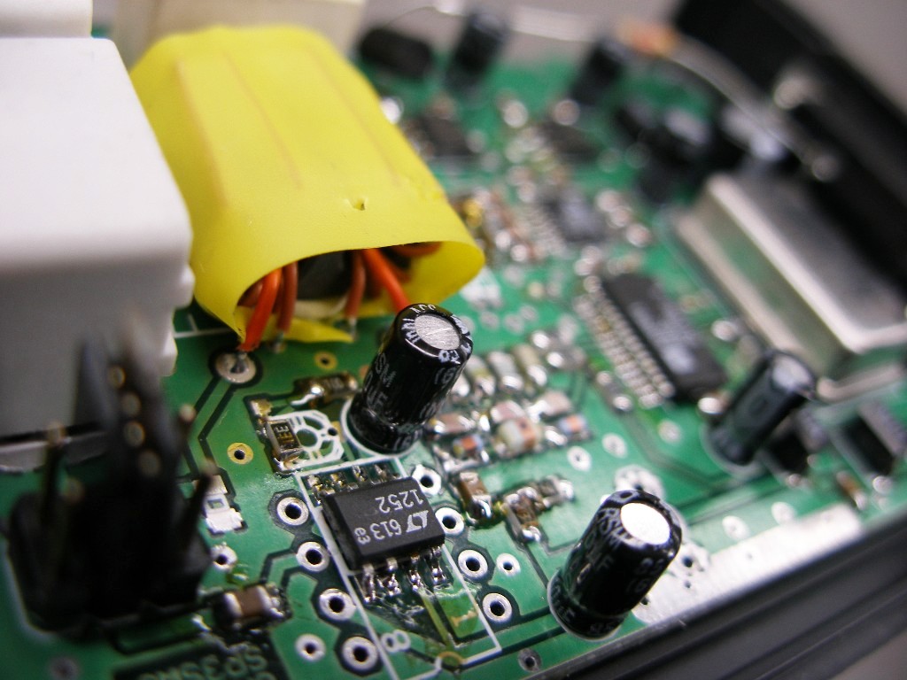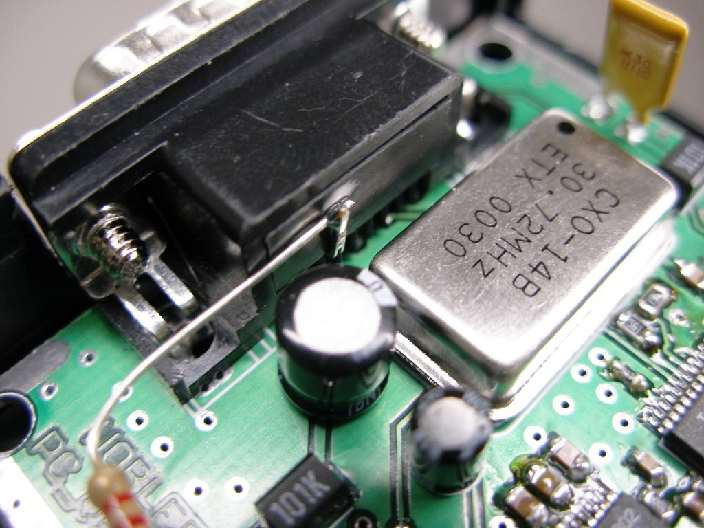 2. Przecinamy ścieżkę w złączu EXTENDERA na wyjściu układu LT1252 - tam potem będziemy montować konektory do EXTENDERA albo wlutujemy rezystor 100 om bezpośrednio na druk - od spodu.