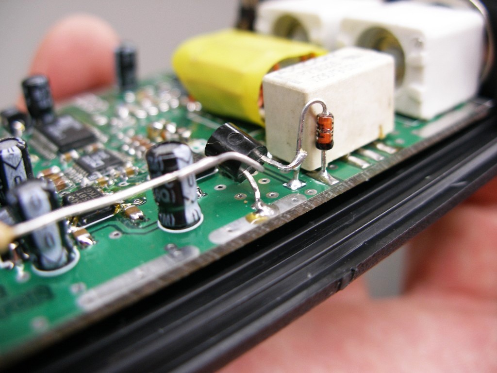 Ø Dioda i tranzystor -Następnie montujemy tranzystorek na pająka - będzie on służył do sterowania przekaźnikiem włączającym wobuloskop wprost z oprogramowania. Taki montaż podyktowany jest tym że możliwość wykonania UPGRADE nastąpiła dopiero po odebraniu płytek. Upgrade programu możliwy był dzięki pomocy wniesionej przez Darka SP7DPT - tuningowaniu programu.