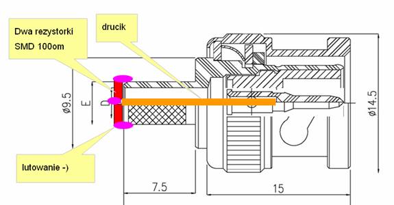 Ø Można usunąć po jednym bolcu z gniazda BNC ( ja preferuję to rozwiązanie)