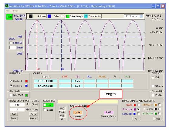 kabel jest na końcu otwarty - pomiar Z zaczyna się od 300 om...