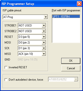 okno ustawień interfejsu programatora